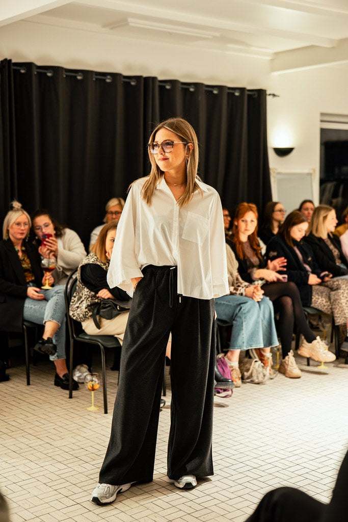 - Chemise blanche plus courte devant